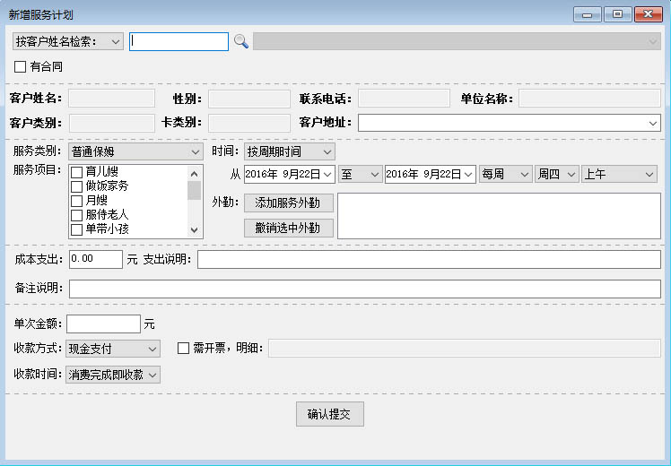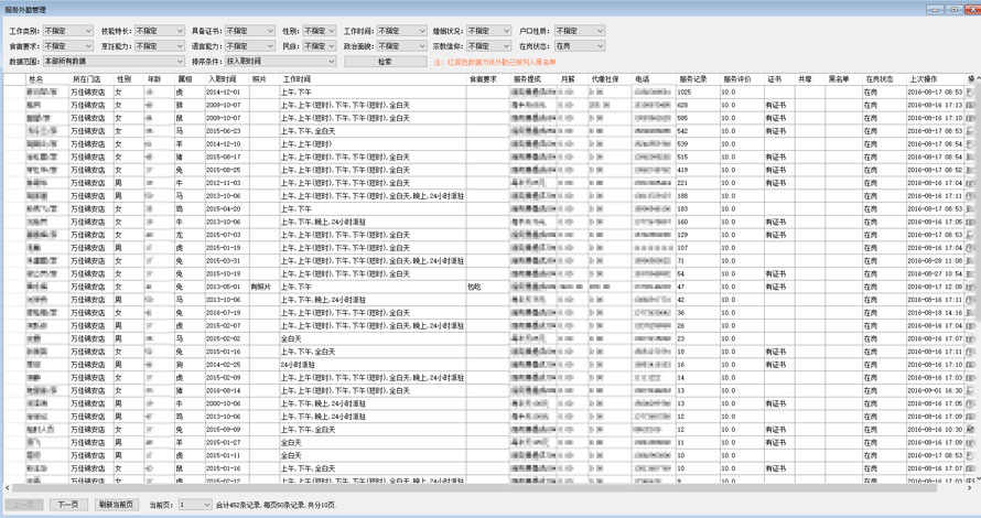 接单可(kě)按工作时间、服務(wù)项目及其他(tā)要求自动匹配适合的服務(wù)人员数据,免除手工翻阅资料查询。