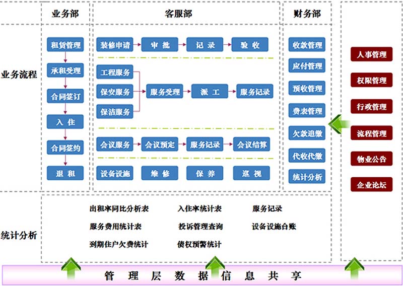 物(wù)业管理(lǐ)企业在新(xīn)的环境下站稳脚跟并取得長(cháng)足发展,集约化管理(lǐ)、标准化管理(lǐ)、精细化管理(lǐ)已经成為(wèi)必由之路,随着物(wù)业管理(lǐ)行业市场化程度的逐步提高,新(xīn)的管理(lǐ)模式也应运而生,集团集约化管理(lǐ)方面的需求也随之增多(duō),集团总公司对各分(fēn)管处的直接控制和监管、各分(fēn)管处对各自物(wù)业管理(lǐ)功能(néng)的信息化实现、集团总公司内部的信息化管理(lǐ)正在逐步地加强。